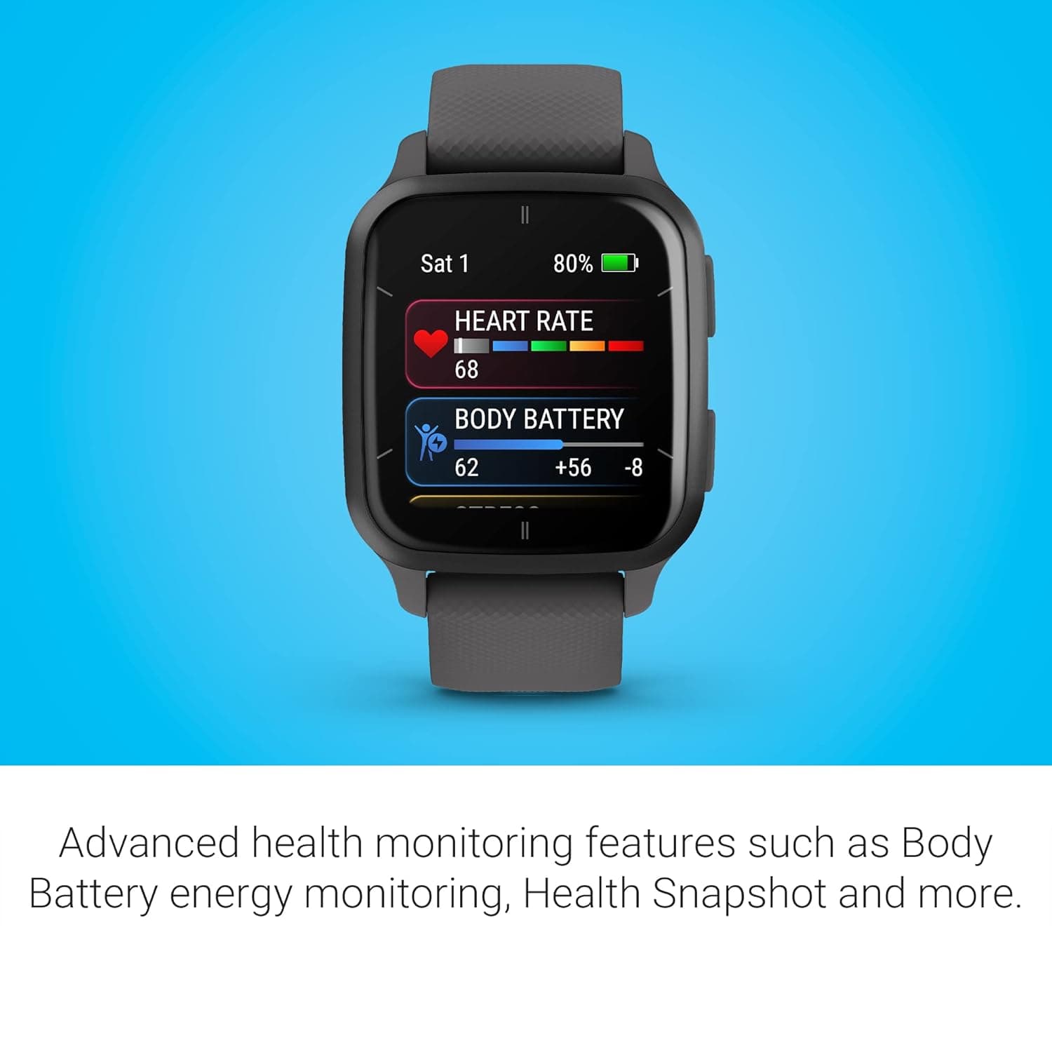 Let’s find a new way to move with the Venu® Sq 2 smartwatch. Featuring a bright AMOLED display, this GPS smartwatch combines daily style with health monitoring and fitness features