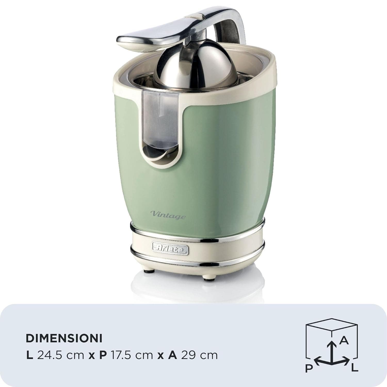Ariete 413-04 – Vintage Electric Juicers 85 W, Quiet, 2 Different Size Cones, Cable Manure, Stainless Steel Nozzle, Anti-Drip Function, Green Metal Body : Amazon.es: Home & Kitchen
