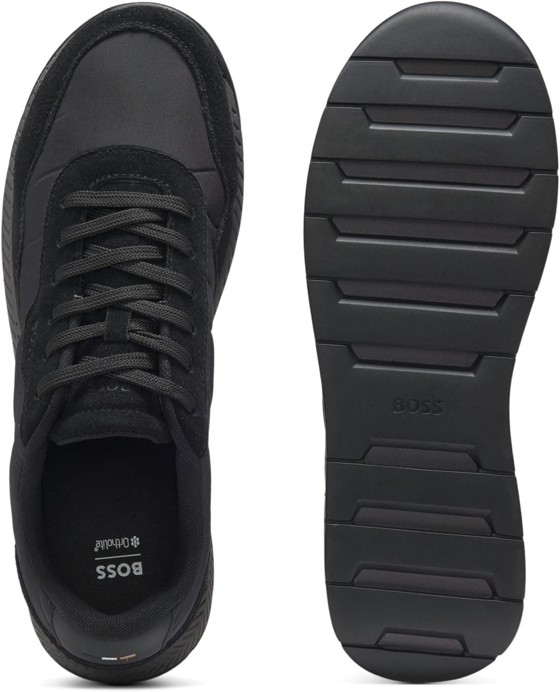 נעלי סניקרס לגברים מבית BOSS בעיצוב ספורטיבי־אלגנטי ובגימור איכותי במיוחד. עשויות מחומרים עמידים עם רמת עבודה גבוהה, לנוחות ועמידות בשימוש יומיומי. מתאימות למראה קז’ואל יוקרתי וללבוש יומיומי, בצבע שחור קלאסי. מידה: 9 UK.