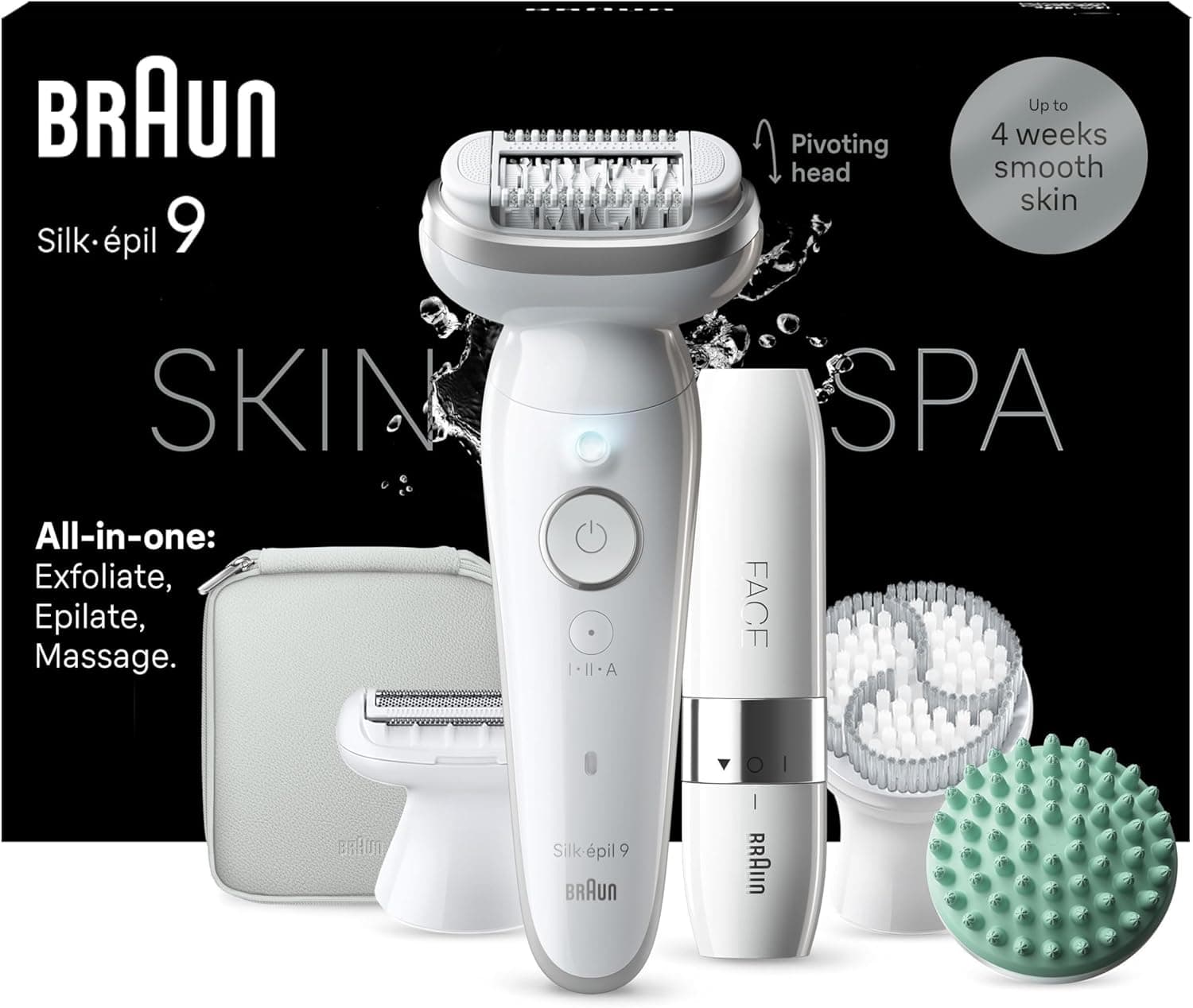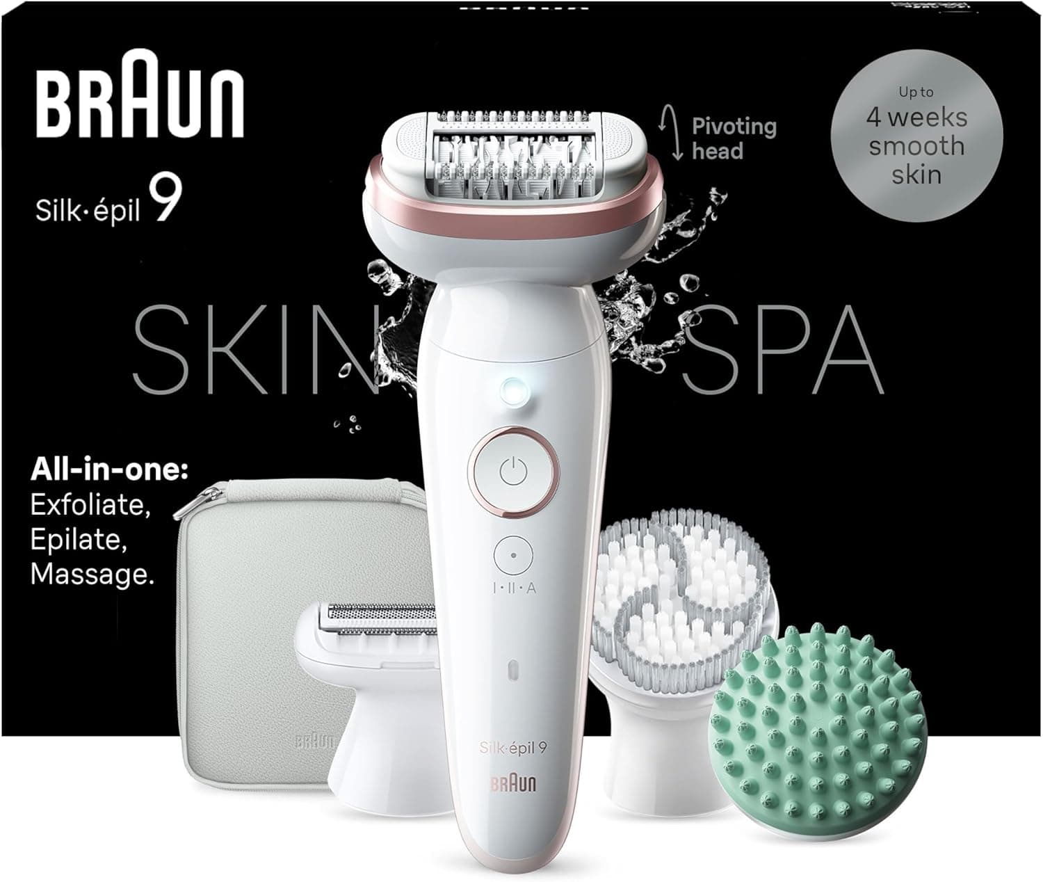 ה - Braun Silk - epil 9 מוותר בנוחות על חודש של עור חלק כמשי, בכל זמן ובכל מקום. הודות לראש המסתובב הרחב, אפילטור רטוב ויבש זה מסתגל ללא מאמץ לקווי המתאר שלך. אפילטור אלחוטי זה של בראון כולל 40 פינצטה של MicroGrip הלוכדת אפילו את השערות הקצרות ביותר (0.5 מ"מ) לעור חלק משיי לאורך זמן. תיהנו מעור חלק כמשי כמו מסלון היופי ושליטה אולטימטיבית הודות לאחיזה הנוחה והמדויקת. אתה כבר לא צריך לחכות עד שהשיער שלך יצמח בחזרה, כמו עם מוצרים אחרים להסרת שיער (למשל שעווה). אפילטור זה הוא פרקטי לשימוש ומבטל את הצורך בניקיון משוכלל או פגישות. טיפ: אפילציה באמבטיה או במקלחת במים חמים כדי להפחית את תחושת הכאב. עמיד מאוד במשך שנים - כל האפילטורים של בראון מיוצרים בגרמניה.