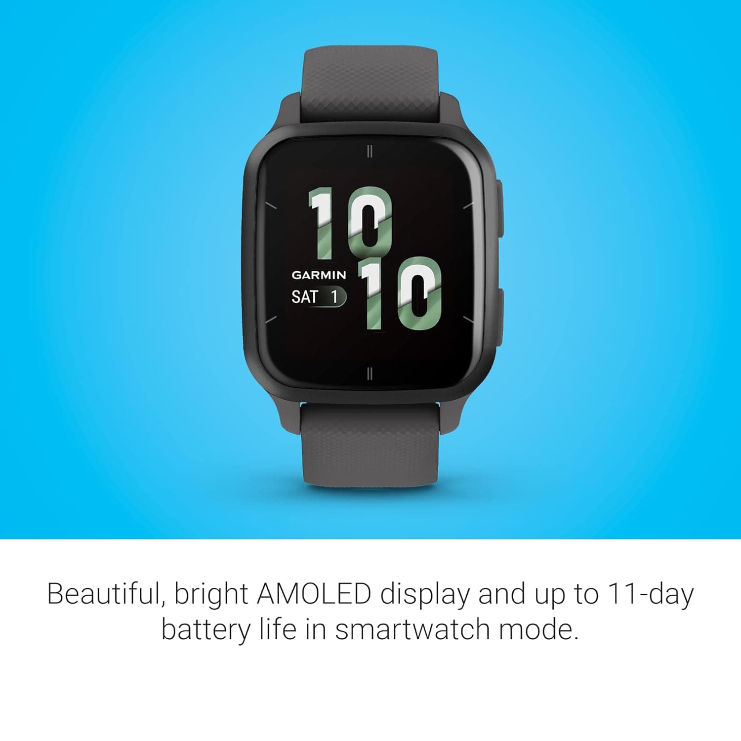 Let’s find a new way to move with the Venu® Sq 2 smartwatch. Featuring a bright AMOLED display, this GPS smartwatch combines daily style with health monitoring and fitness features