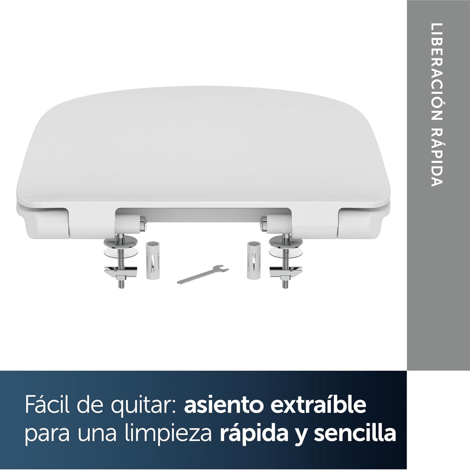 מושב אסלה אידיאל סטנדרט דק בצורת D עם טריקה שקטה ואופציה לשחרור מהיר, דuroplast עמיד - לבן (370x450x45 מ"מ)