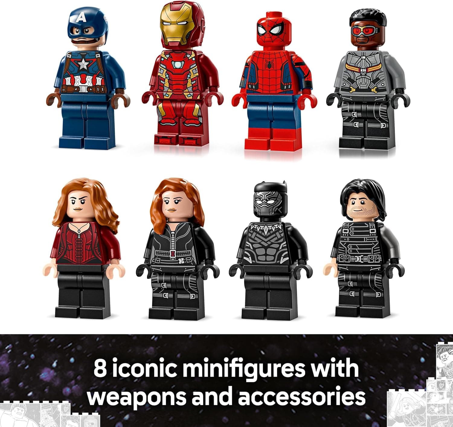 סט בנייה בהשראת סצנת הקרב בשדה התעופה מסרט Marvel Captain America: Civil War. כולל דמות Ant-Man גדולה ומתכווננת ו‑8 מיני-פיגרס של גיבורי על. מטוס Quinjet עם כנפיים מתקפלות ותא טייס נפתח, וחבית מתפוצצת למשחק אקשן. מיועד לגיל 10+ לחוויית בנייה ודמיון.