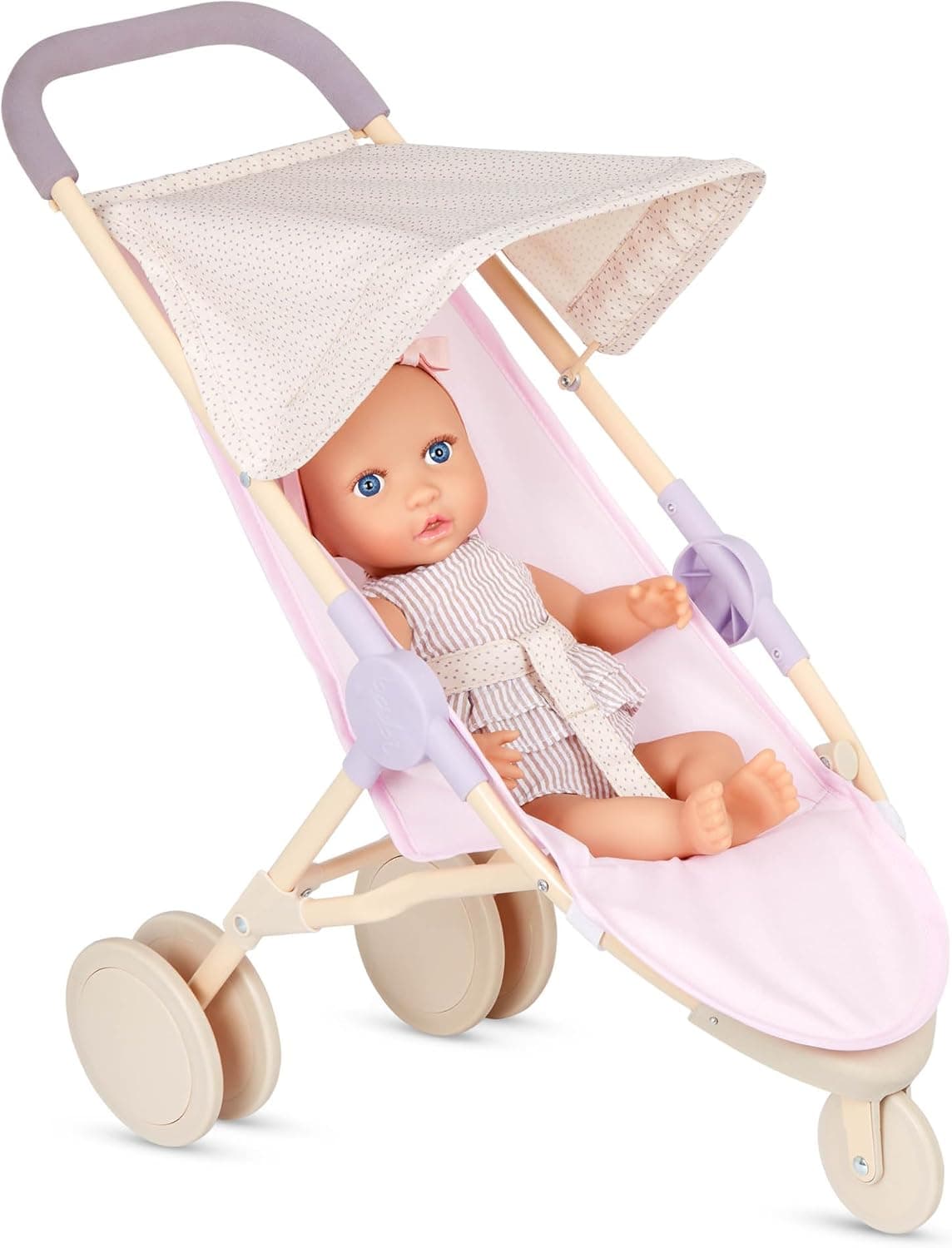 תנו לבובות התינוקות שלהם מקום מהנה וסטייליסטי לחלום ולשחק עם ערכת המשחק של לולהבייבי. סט חמוד זה כולל לול בובות נייד, כיסא אוכל, עגלת ריצה ובובת תינוק בגובה 14 אינצ' לטיפול ואהבה. מעוצב בדפוס נקודות טרנדי, הלול המודרני עוזר למטפלים הקטנים ליצור nursery יפה באזורים האהובים עליהם. והוא בגודל מושלם לשמור על הבובות ליד המיטה במהלך הלילה לחלומות מתוקים יחד. זמן האכלה? שימו את בובת התינוק בכיסא האוכל כדי לשחק תפקיד בזמן האוכל לאחר השינה שלה, או קחו אותם לטיולים מהנים בעגלת הריצה! אבטח את התינוק עם רצועת הבטיחות והשתמש במכסה הקיפול כדי לשמור עליהם נוחים. לעגלה יש גם ידית קצף קלה לתפיסה, והגלגלים האחוריים הכפולים הגדולים מוסיפים איזון נוסף כאשר פעוטות מפתחים מיומנויות תיאום ומרחב. כל אביזר דורש הרכבה מינימלית, עם הוראות קלות לעקוב אחריהן. ערכת nursery של לולהבייבי מתאימה לרוב בובות התינוק בגובה 14 אינצ' ואביזרים. מומלץ לילדים בגיל 2 ומעלה.