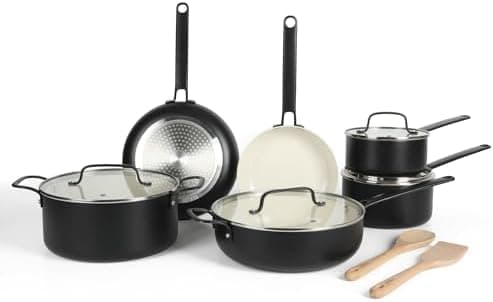 Ceramic nonstick cookware has gained attention and support from home cooks who are on the lookout for healthier and safer ways to prepare and serve their meals for their family and guests. Going outside the walls of simply being a kitchen staple,these pieces of cookware offer a leaner cooking option to achieve a healthier lifestyle. The Emmeline 16-piece Ceramic Nonstick Aluminum Cookware Set is made without PFOA, PTFE, lead or cadmium to ensure that homemade meals maintain and serve the natural benefits of each flavor and ingredient of your dish. Suitable for all kinds of stovetops, these pots and pans feature a heavy-gauge aluminum construction to distribute heat efficiently for even cooking results. Longer handles offer a safer distance from the heat source and other hot surfaces. Secured by stainless steel rivets, the extended cast handles offer a strong and sturdy grip. For a more industrial look, the tempered glass lids take on a modern and flat shape. It encourages better heat and moisture distribution. Oven safe up to 450°F. Dishwasher safe, hand wash recommended. Embrace thoughtfully designed home essentials from America’s most trusted lifestyle expert, Martha Stewart. Step into her exquisite and iconic world filled with a curation of high-quality products to prep, cook, bake, serve, and enjoy. All crafted to elevate everyday homemaking and seasonal entertaining, these kitchen and tabletop pieces blend style and performance, inspiring avid hosts and home cooks to set stylish tables, serve up delicious meals, and create spectacular memories.