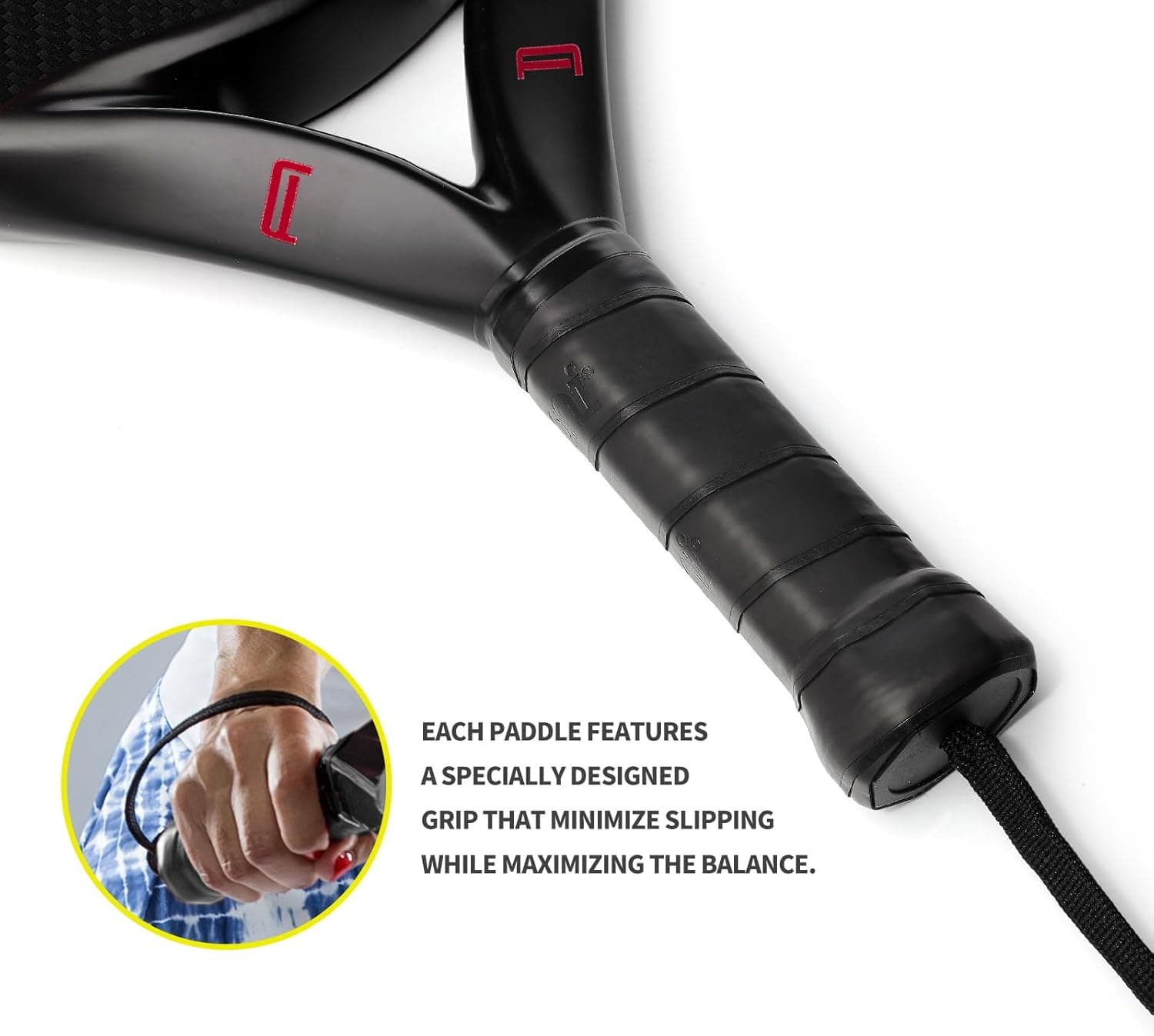 רקטת פדל עם משטח סיבי פחמן וליבת קצף זיכרון EVA, רקטות טניס פדל קלות (אדום)
