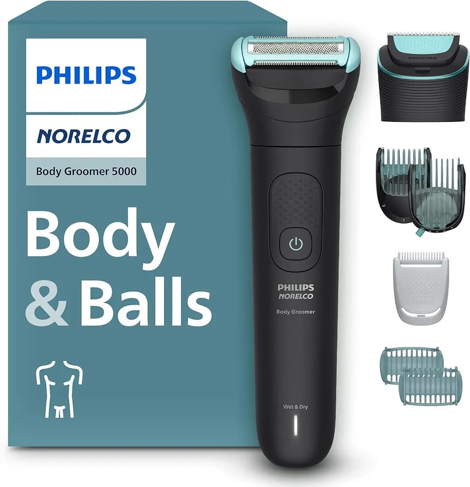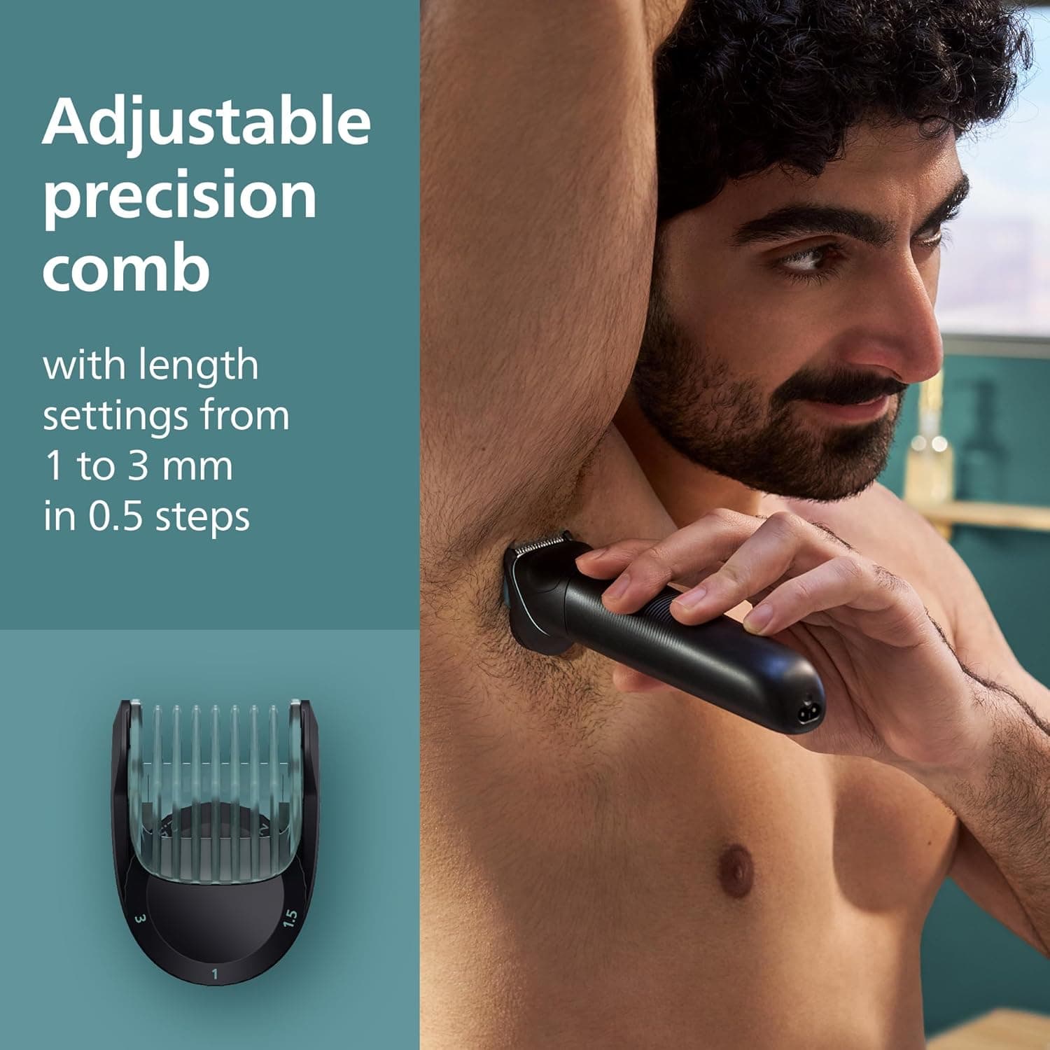 מכונת הגילוח Philips Norelco Body Groomer 5000 Series מיועדת לגילוח נוח של שיער גוף כולל אזורים אינטימיים. עם מערכת ראש כפול מתחלפת ייחודית, ערכת הגילוח לגברים בסדרה 5000 מאפשרת לך לעבור בקלות בין גילוח שיער גוף לבין חיתוך. מכונת הגילוח שלנו ידידותית לעור, נבדקה דרמטולוגית ויש לה טכנולוגיית Triple Protect שמבטיחה גילוח בטוח, גם באזורים רגישים יותר. לחלופין, החלף לראש החיתוך החשמלי לגברים ובחר אחד מהמסרקים המתכווננים, אינטימיים או דו-כיווניים כדי להשיג תוצאה מדויקת ואחידה, גם באזורים רגישים, מבלי לדאוג לחתכים. מכונת החיתוך הזו לגברים כוללת ידית ארגונומית לשליטה טובה יותר גם באזורים קשים לגישה והיא 100% עמידה במים לנוחות גילוח רטוב ויבש. לקבלת התוצאות הטובות ביותר, השתמש בשיער יבש לפני המקלחת. לניקוי, רוץ את הראש ואת רכיב החיתוך מתחת למים. הסוללה נטענת בעוצמה גבוהה מאפשרת עד 100 דקות של חיתוך או גילוח ללא חוט לאחר טעינה של שעה אחת. מכונת הגילוח Philips Norelco Body Groomer 5000 Series אינה זקוקה לשימון ומגיעה עם אחריות של עד 5 שנים¹. ¹ 2 שנים + 3 שנים אחריות לאחר רישום בתוך 90 יום באתר Philips.com