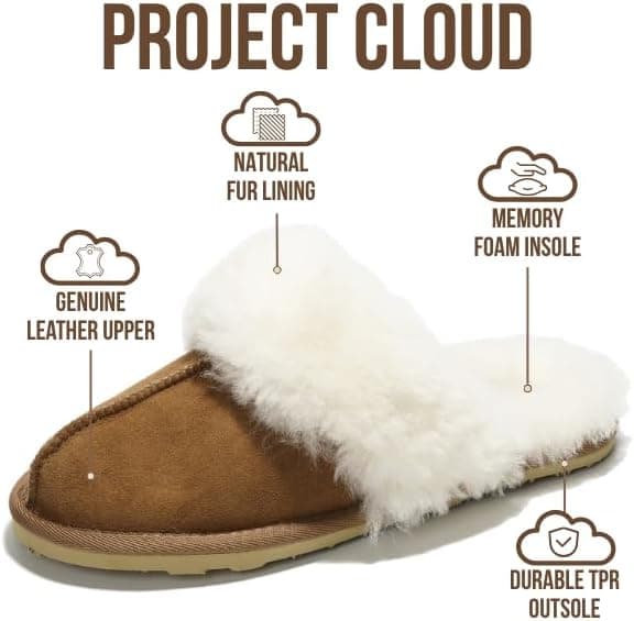 נעלי בית לחורף לנשים Project Cloud מעור אמיתי מאוסטרליה ופרווה טבעית