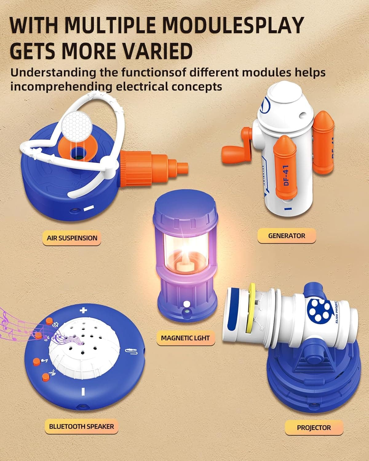 ערכת STEM אלקטרוניקה ומדע לילדים, 66 חלקי מעגלים להרכבה, 1200 ניסויים