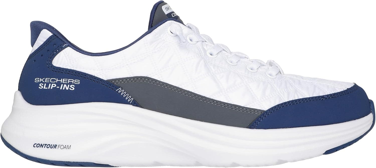 בצע מהלך בנוחות גמישה כשאתה לובש Skechers Hands Free Slip - in: Contour Foam Cozy Fit. מעוצב עם כרית העקב הבלעדית שלנו, סגנון תחרה זה כולל רשת מרופדת מרופדת עם חלק עליון הניתנת לנשימה עם מדרס קצף זיכרון מקורר אוויר של Skechers ומדרס מרופד.