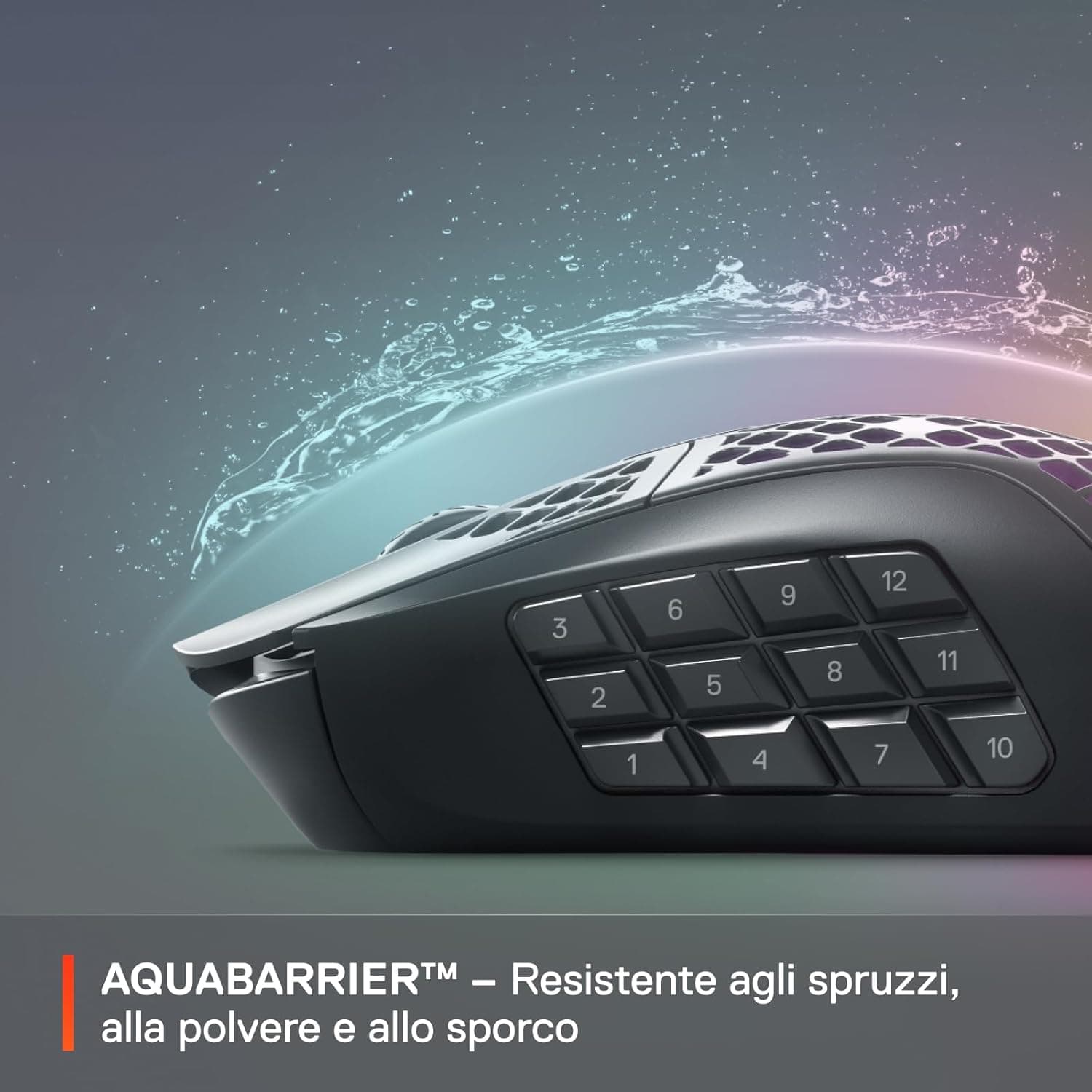 עכבר גיימינג אלחוטי SteelSeries Aerox 9 עם עיצוב קל משקל ועמיד במים, כולל 18 כפתורים וטכנולוגיית חיבור Bluetooth/2.4 גיגה הרץ.