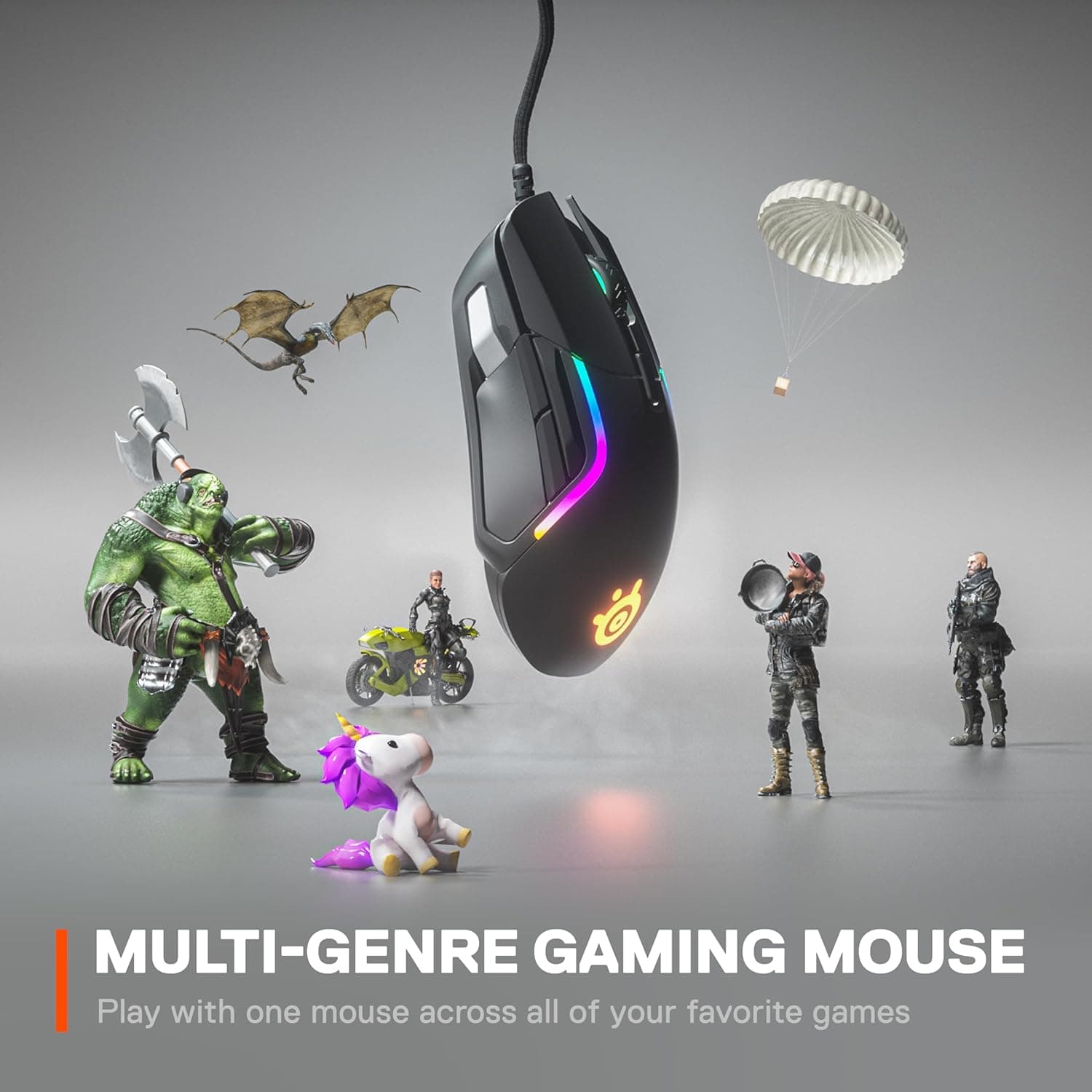 An ergonomic 9-button mouse with 5 fast-acting side buttons, designed for maximum speed and ease of use in fast-paced games such as Battle Royale, FPS, MOBA and MMO. It is equipped with a 18,000 CPI TrueMove Air optical sensor for optimal aiming accuracy. Dustproof mechanical switches ensure 80 million clicks, super mesh cable reduces drag effect, and PrismSync bright lighting with 16.8 million colors is available in 10 zones. The ergonomic and lightweight shape adapts to all grip styles and is built, indoors and outdoors, to withstand even the most intense sessions.