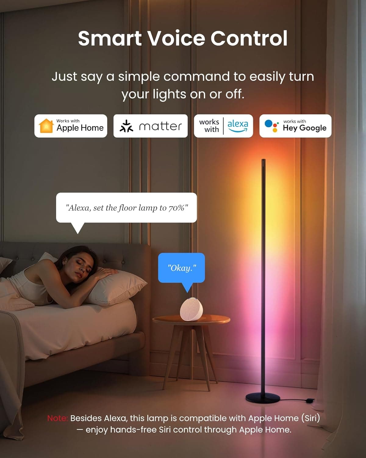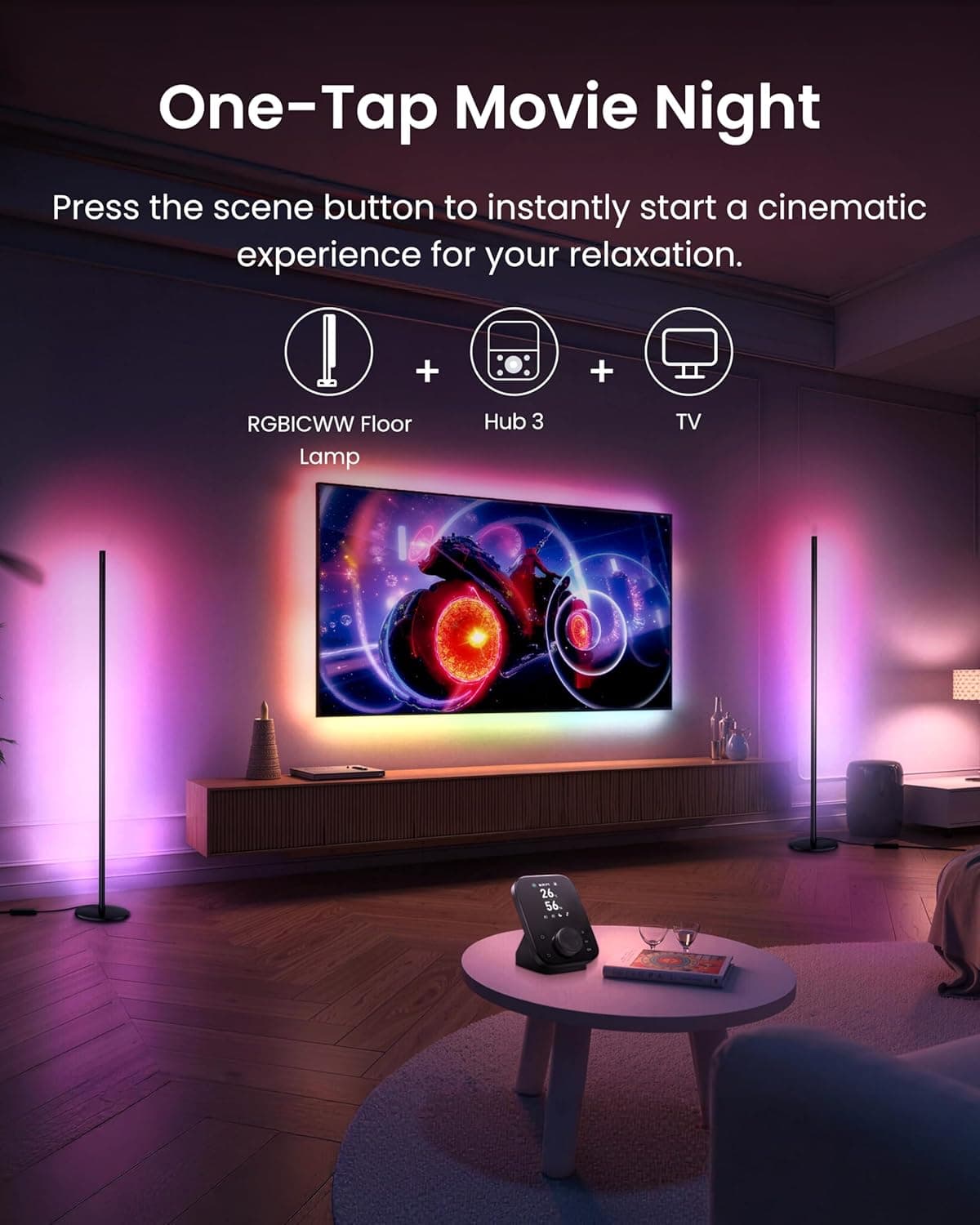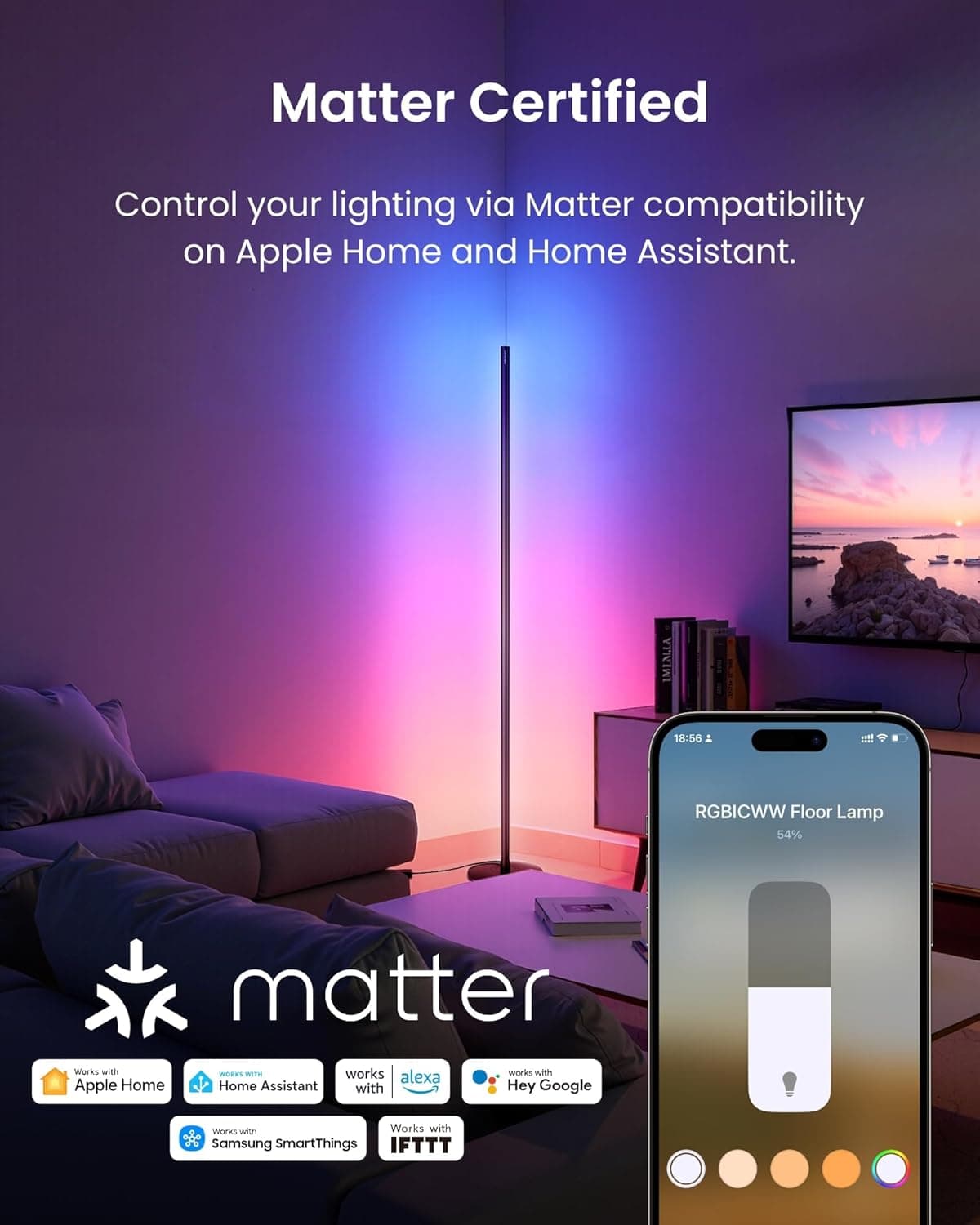 מנורת רצפה חכמה SwitchBot Matter RGBICWW, סנכרון מוזיקה וצבעים