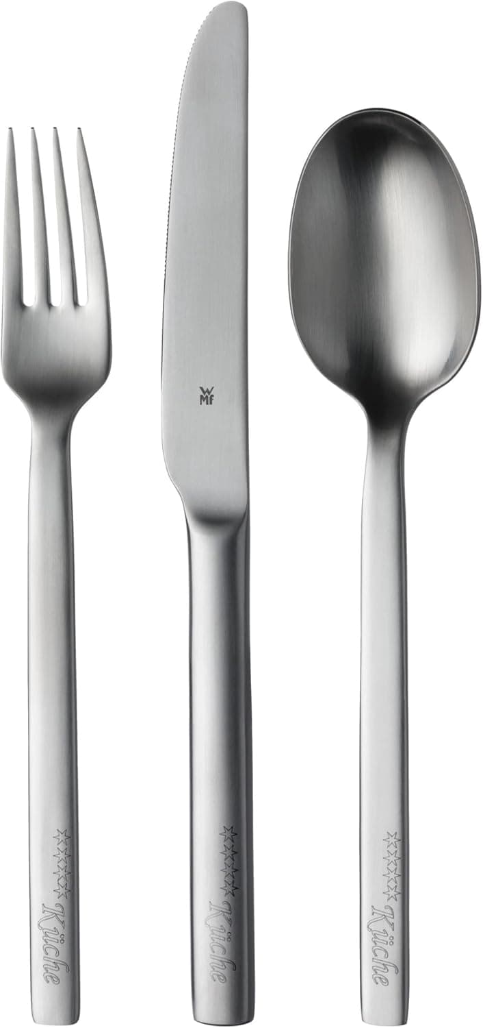 סט סכו"ם WMF מסדרת Alteo עשוי פלדת Cromargan 18/10 איכותית בעיצוב קווים נקיים וצורה מעוגלת ונוחה לאחיזה. כולל 30 חלקים: כפות, מזלגות, סכינים, כפיות קפה ומזלגות קינוח. עמיד, היגייני, חסין חומצות ומתאים לשטיפה במדיח. גימור מט אלגנטי ותכנון WMF Atelier.