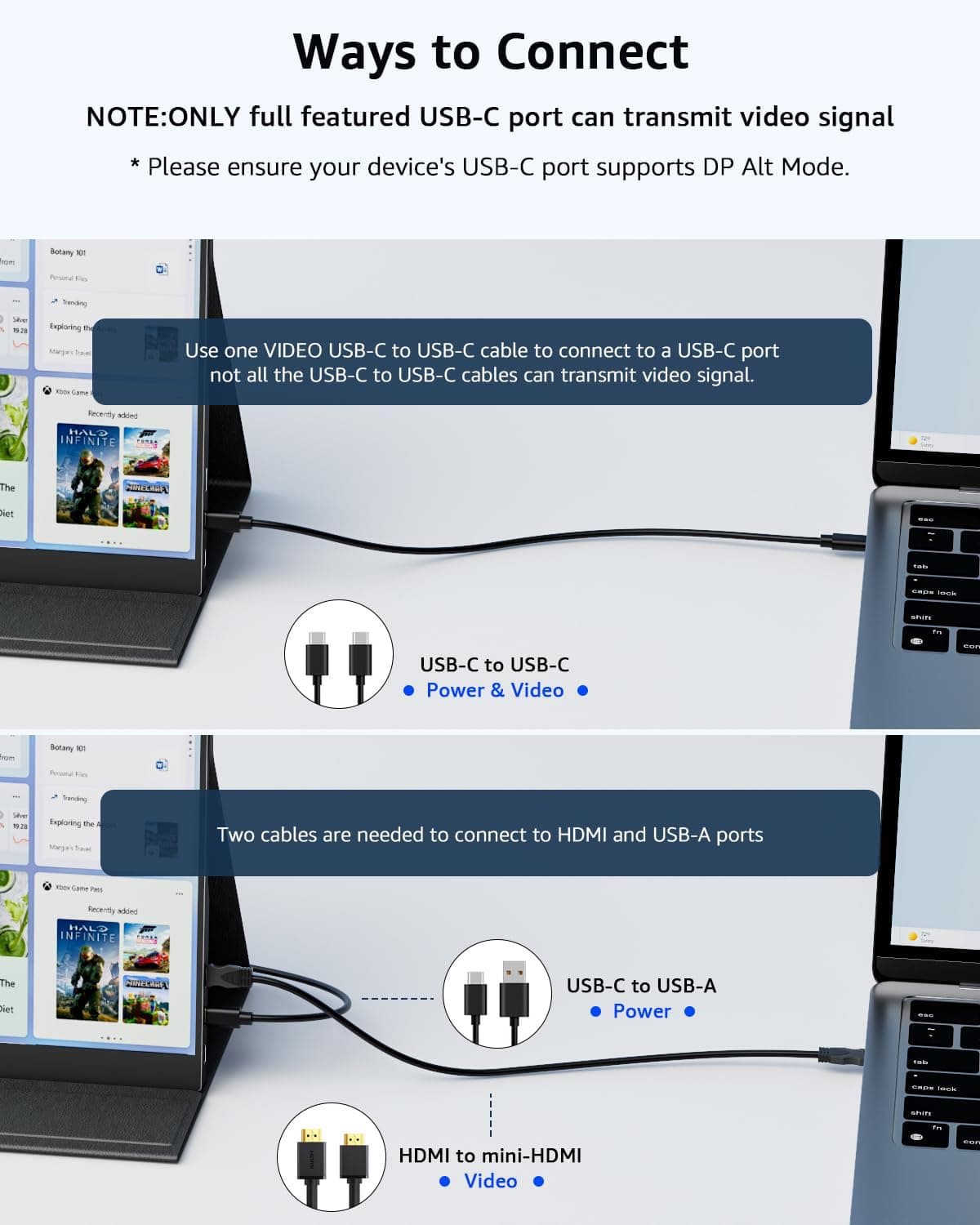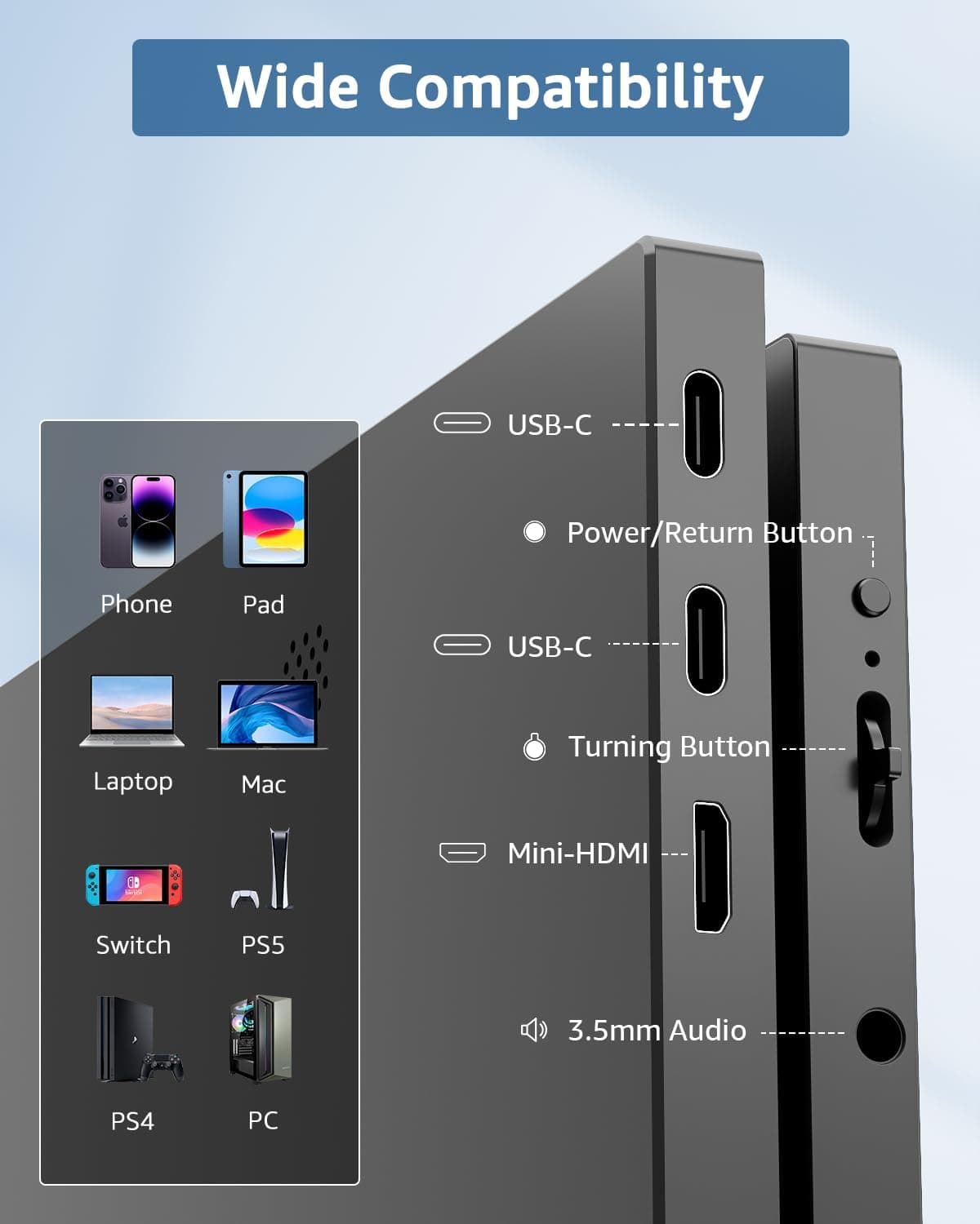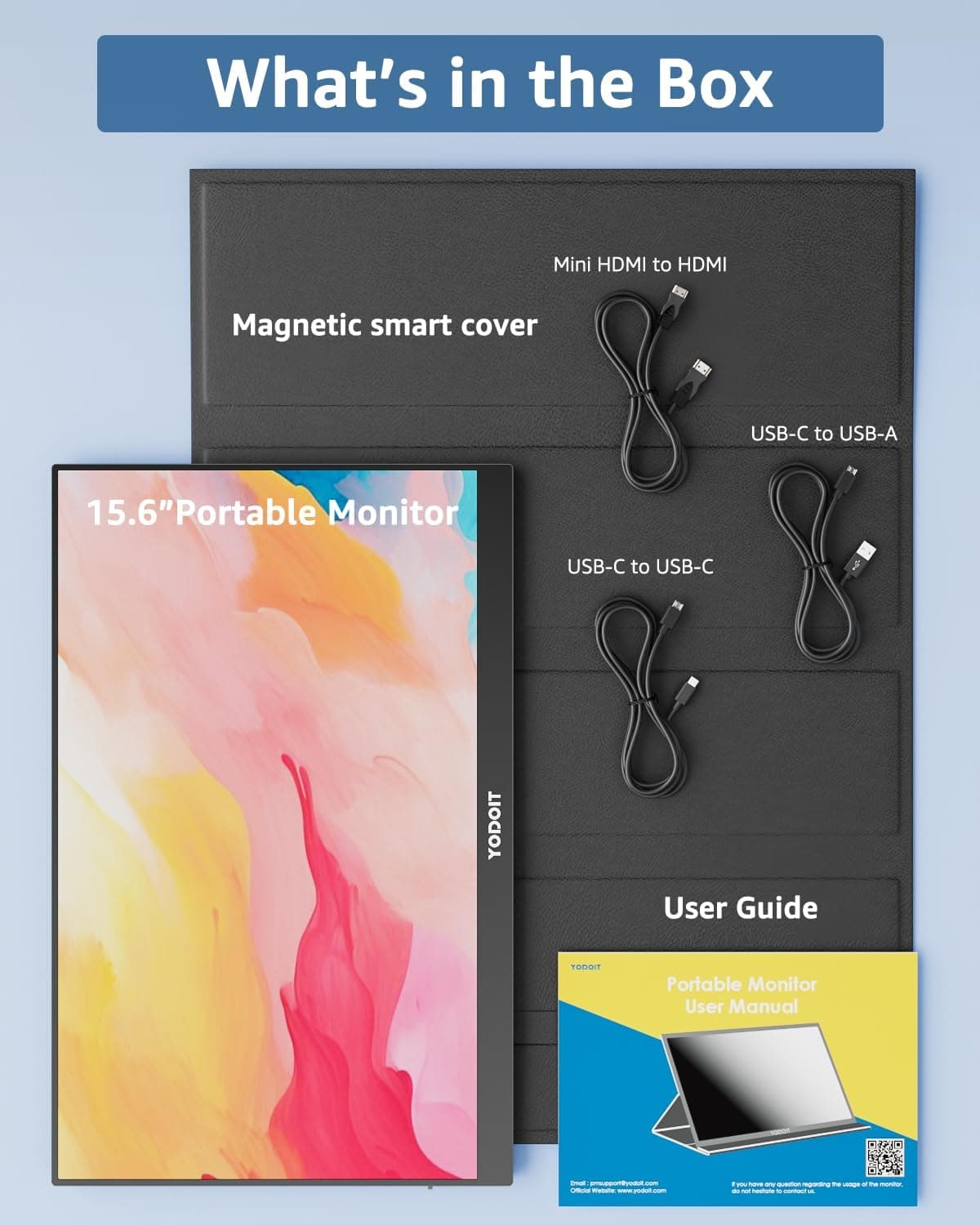 מסך נייד Yodoit ‏"15.6 IPS FHD חיבור USB-C ו-HDMI רמקולים מובנים וכיסוי